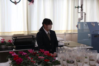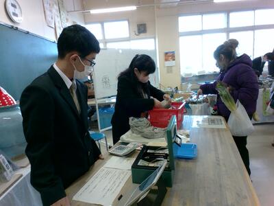 また、学科生産品の即売会も同時に開催し、生徒たちが販売員となり、園芸科の野菜、木工科の木工製品、家庭総合科の縫工(ほうこう)製品、窯業(ようぎょう)科の陶磁器などを笑顔で販売しました。
