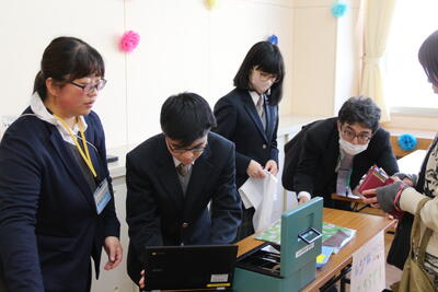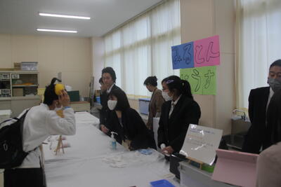生徒たちが講師となり、市民のみなさんに作業体験をしてもらいました。