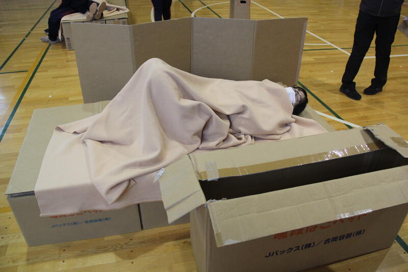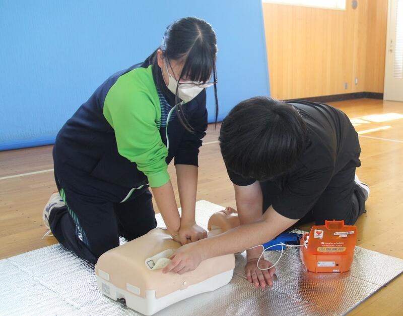 体験学習では、1年生が【防災に関する体験的活動】、2年生が【心肺蘇生やAEDの使用方法】3年生が【避難所生活における段ボールベッドの活用】について学習を行い、実際に体を動かして自分でやってみることで道具の活用方法などが身につき、防災意識をより高めることができました。