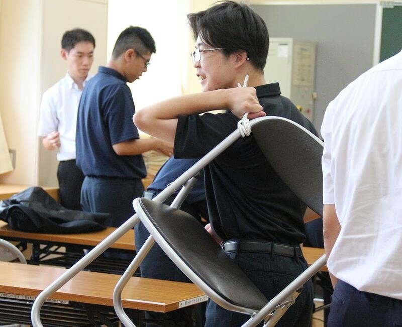 避難訓練では、地震・火災が発生し、避難経路の確認や、校内捜索の対応を訓練しました。大津波警報を想定した二次避難では、今年度初めて垂直避難に挑戦し、安全に配慮のもと屋上へに避難を実施しました。また、火災を想定した煙体験では、姿勢を低くするなどの避難のポイントを生徒それぞれが意識し、真剣に取り組む様子が見られました。