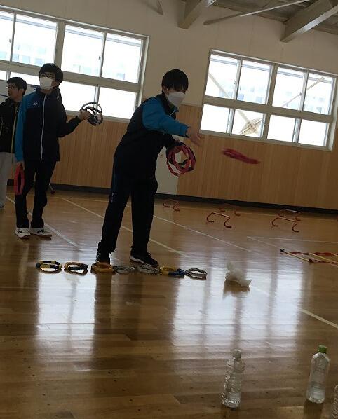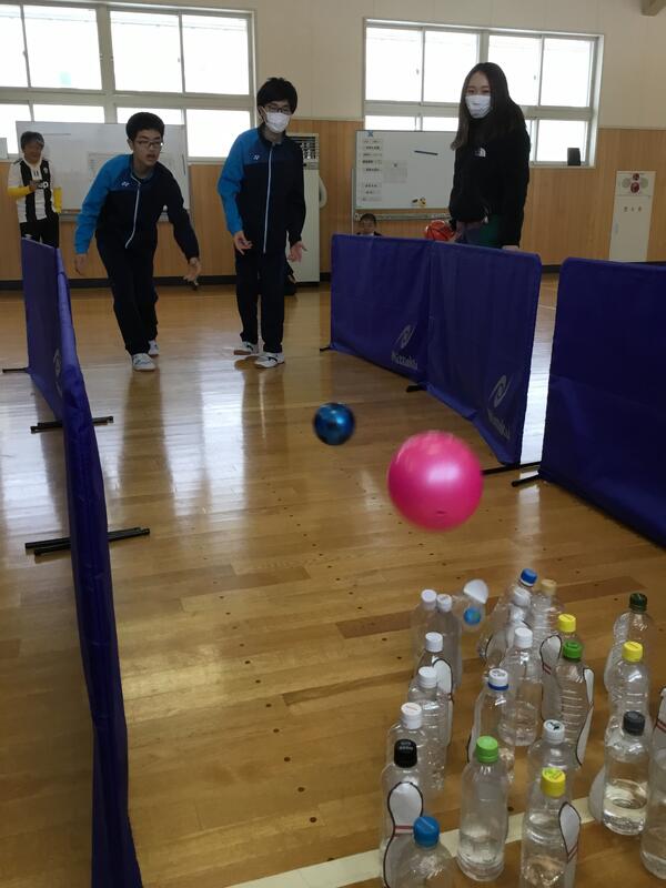 12月11日(木)に全校スポーツレクリエーションを行いました。今年度は「全員が楽しめるスポーツレク」にするため、バドミントン、ドッジボール、ボウリング、勝ち負けの無いスポーツの4種目を企画し、生徒自身で2種目選んで参加できるよう保健委員会で考えました。